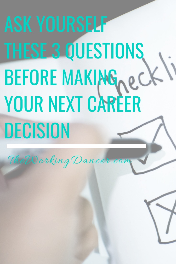 These three questions can lead different people in different direction. I have a friend who had to choose between performing once with a legendary icon or going on tour for months with a pop star. Each opportunity would push his career forward in a different way. The tour would make him more money, but the icon would bring him more happiness. Many of his friends advised him to perform with the icon because it would be the fulfillment of a lifelong dream as well as the focal point of his resume. But for him, the money won out. No matter the artist or the duration, he needed to be able to come home to a paid-for apartment with working lights. He picked stability. In the same situation, many others would have chosen differently, but neither choice is wrong.